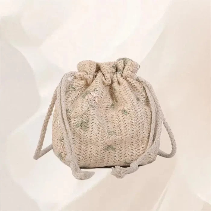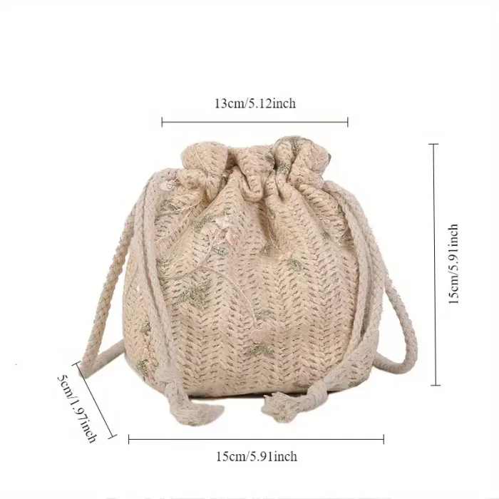 A stylish summer crossbody bag for women, perfect for casual fashion, featuring straw woven design with flower embroidery and lace details. Made of synthetic material for long-lasting durability. Ideal for daily use, vacation, or casual outings. Comes with a 120 cm shoulder strap and weighs 120g. Suitable for females.