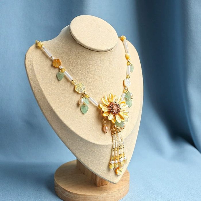 Materials: Our necklaces are mainly made with soft color-preserving copper, freshwater pearls, red agate, flower charms, leaf charms, and tassels.